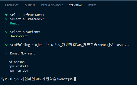 npm create vite@latest 프로젝트 이름 마음대로 설정